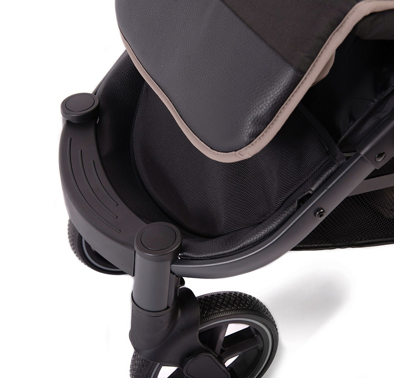 Ручка и бампер из экокожи. Ручка регулируется по высоте. Бампер можно откинуть в одну сторону, а не снимать;