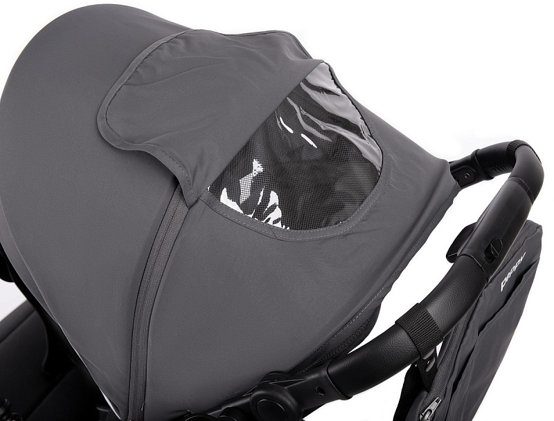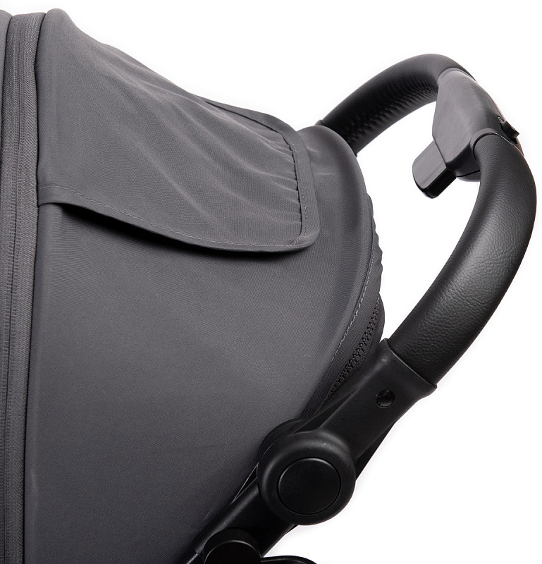 Ручка и бампер из экокожи. Ручка регулируется по высоте. Бампер можно откинуть в одну сторону, а не снимать;