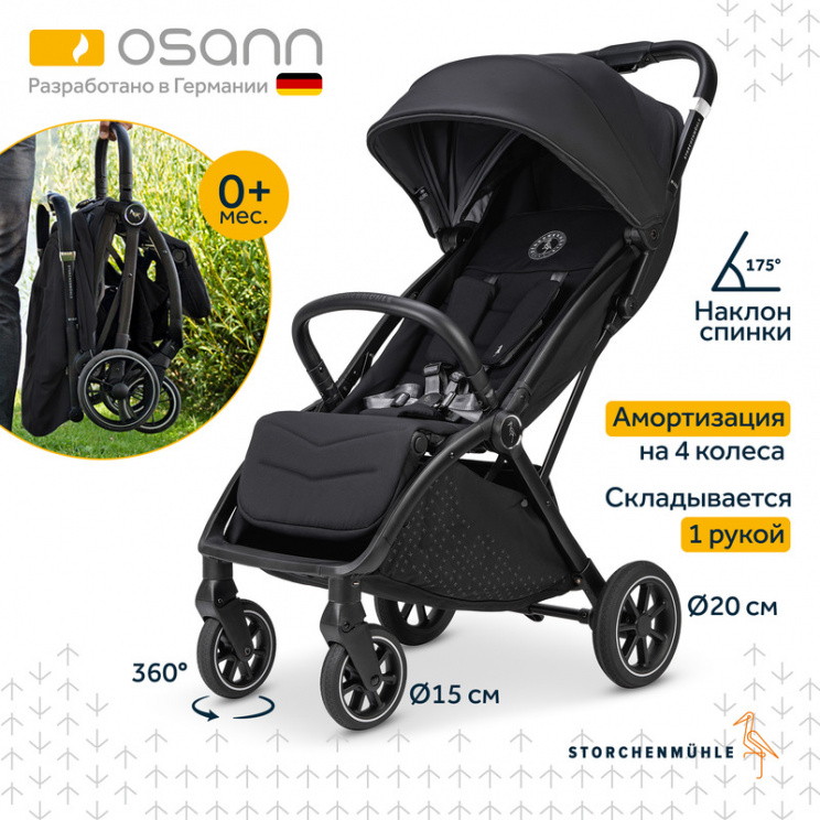Откройте для себя непревзойдённую лаконичность и функциональность прогулочной коляски для детей с рождения до 4 лет (до 22 кг) от немецкого бренда Storchenmühle by Osann.