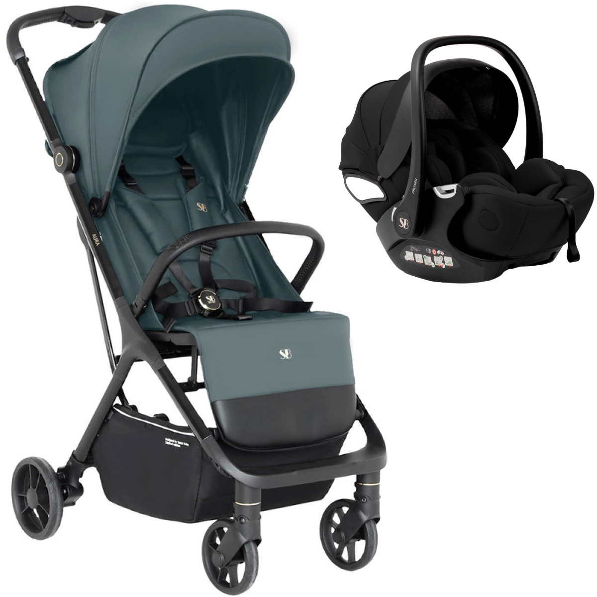 Прогулочная коляска Sweet Baby Aura + автокресло Premier Black Green