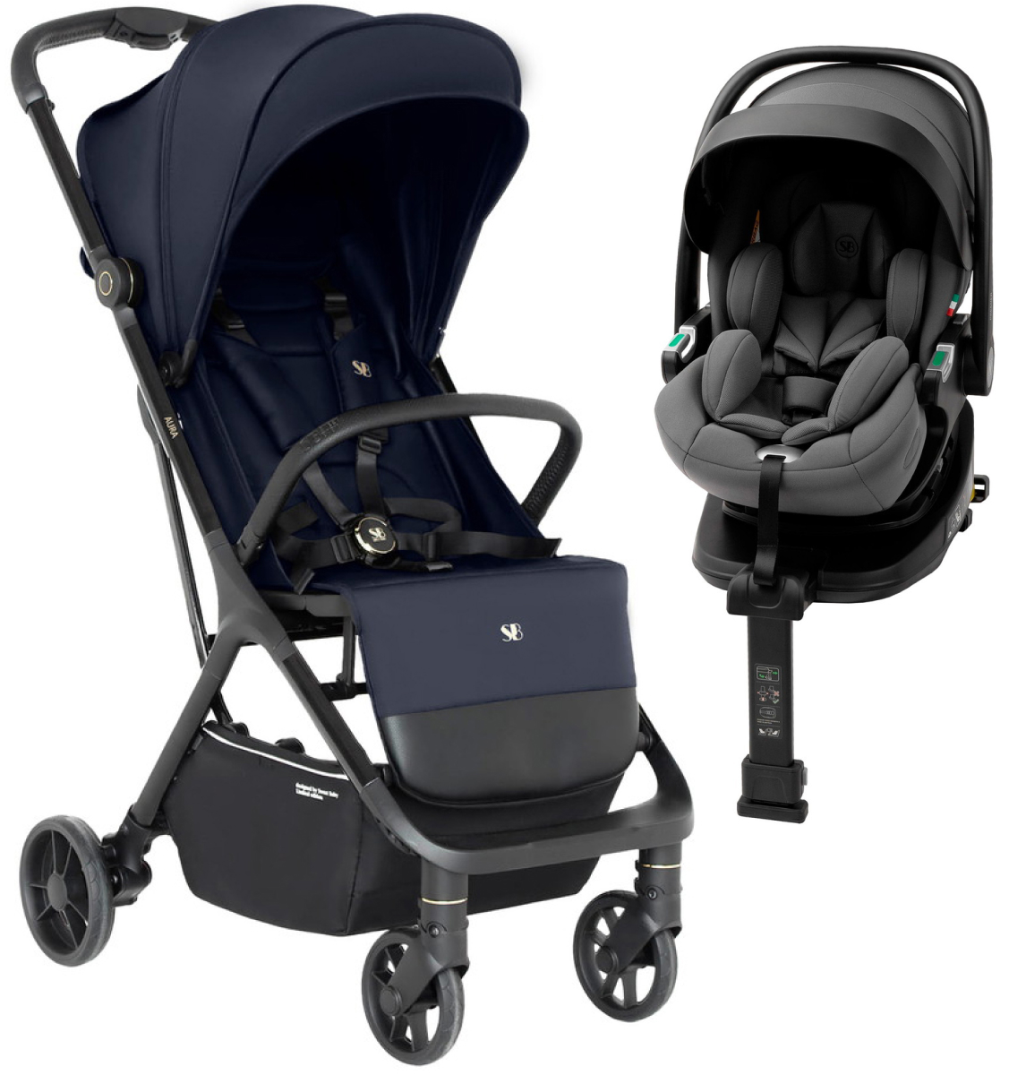 Прогулочная коляска Sweet Baby Aura + автокресло Premier Plus Grey Dark Blue
