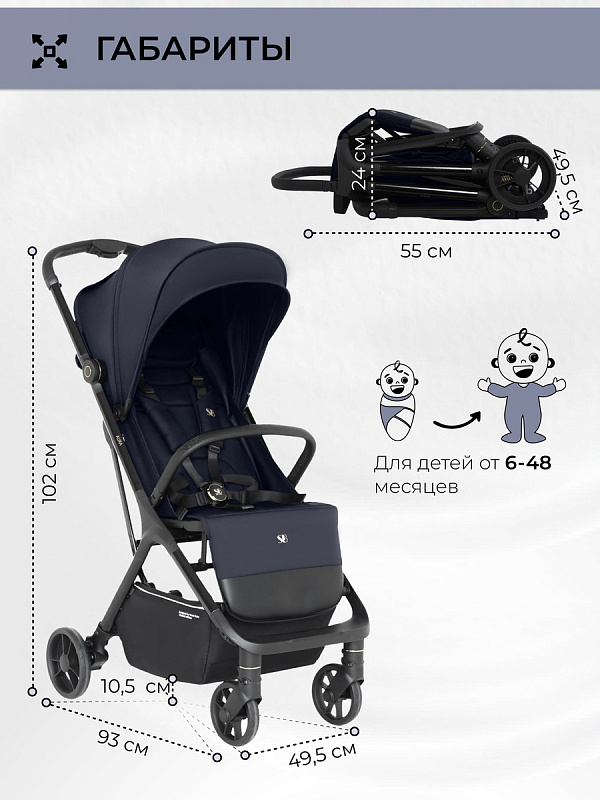 Лёгкая прогулочная коляска Aura- стильная, маневренная, легкая коляска, которая станет незаменимой помощницей в путешествиях и дальних поездках.