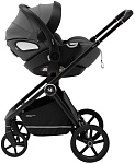 Теперь коляска выглядит еще более современно – затемненная хромированная фурнитура с амортизационными пружинами придают коляске еще более строгий и стильный вид.