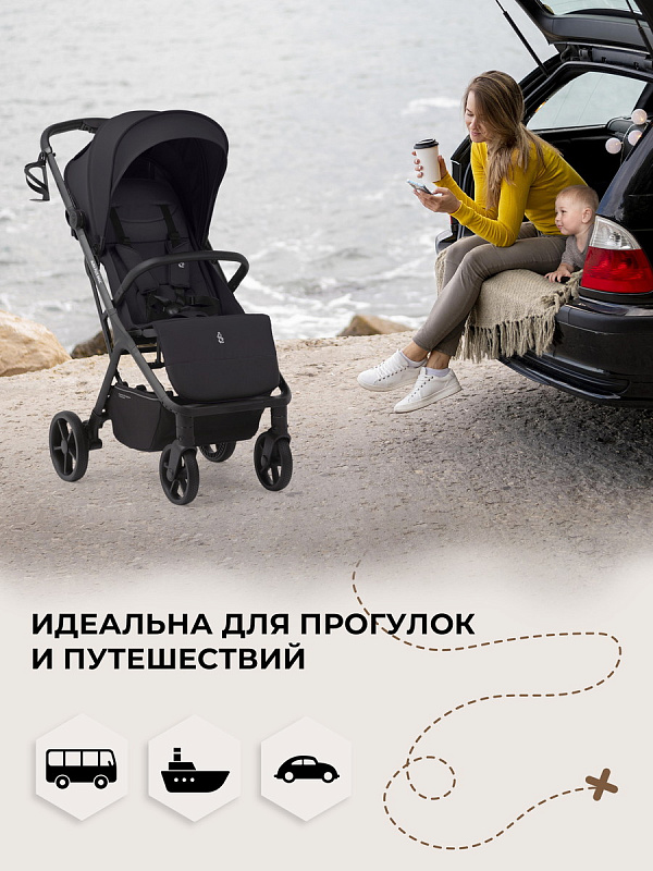 Вес коляски 8,1 кг., увеличенные колеса из цельной резины с протекторами обеспечивают плавное движение по разным поверхностям – будь то тротуары, парки или проселочные дороги.