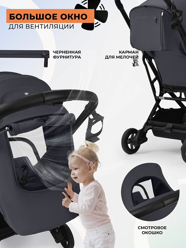 Функция автосложения одной рукой – оценят все, а смотровое окошко с сеточкой – обеспечивает заботливый присмотр за малышом в коляске.