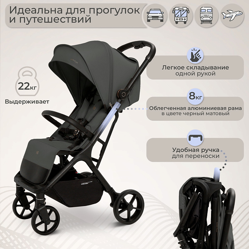 Разнообразие стилей: Aura Plus представлена в красивых расцветках: Black, Light Grey, Dark Grey, Green Forest и Beige. Выбирайте тот вариант, который подчеркнет ваш стиль и значительно облегчит повседневные выходы на прогулку.