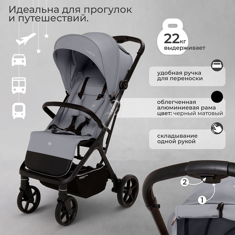 - Несмотря на лёгкость, коляска выдерживает вес до 22 кг – надёжность в каждом моменте!