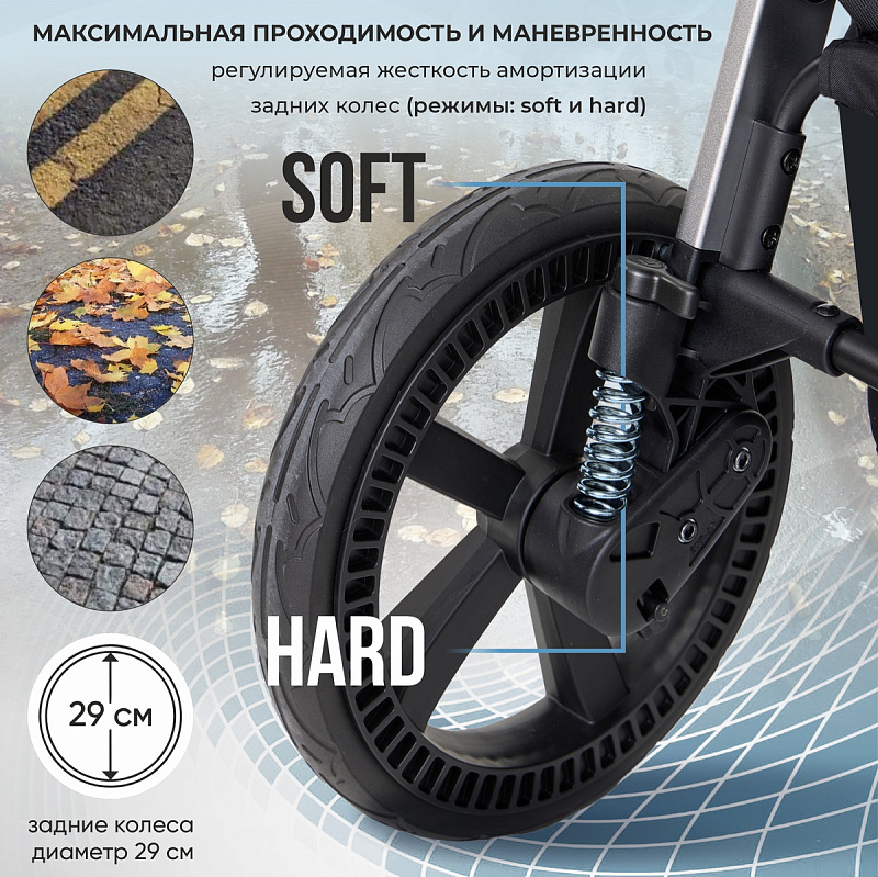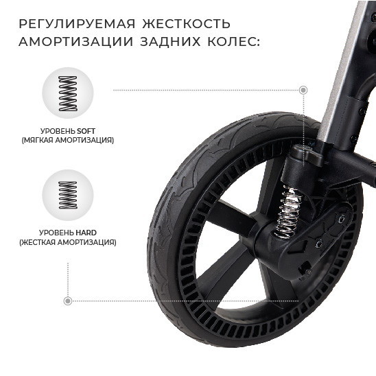 • регулируемая жесткость амортизации задних колес (режимы: soft и hard);