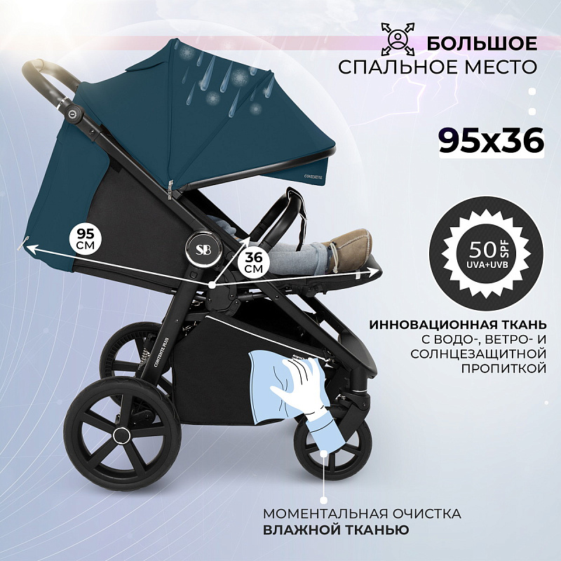 Для безопасности малыша предусмотрены пятиточечные ремни с мягкими накладками и светоотражатели на ремнях, бампере и корзине, что улучшает ее видимость в темное время суток. Увеличенный регулируемый капюшон с двумя замками из непромокаемой и продуваемой ткани защитит маленького пассажира от непогоды.