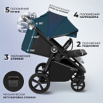 Также, коляска оснащена регулируемой подножкой с вставкой «антигрязь», что упрощает уход за ней и имеет 2 положения: сидячее и лежачее. Родительская ручка из экокожи регулируется по высоте в 5 положениях, подстраиваясь под ваши потребности. Бампер также выполнен из экокожи, придавая коляске изысканный вид.