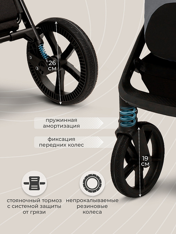 Большие не прокалываемые колеса с мягкой амортизацией - надежный спутник по любому бездорожью! Легко справятся с сугробами, грязью и бордюрами;