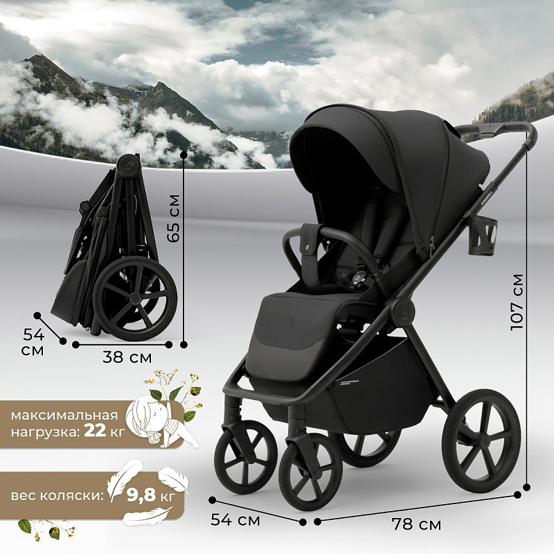 Большое спальное место 95x33 см разработано для максимального уюта. Вес коляски 9,8 кг.