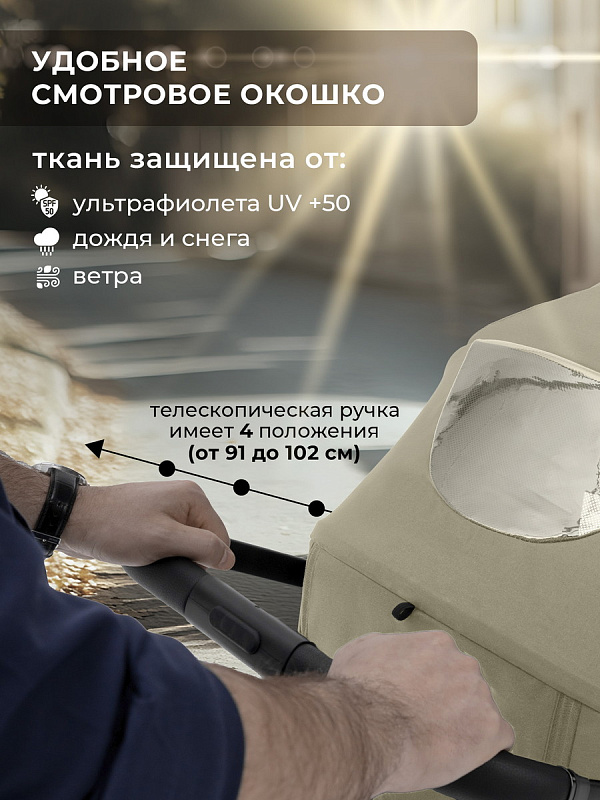 Созданная с акцентом на детали, Elegante S оснащена телескопической ручкой, которая подстраивается под любой рост родителей, и глубоким капором с дополнительной секцией на молнии, который надежно защитит малыша от солнечных лучей и любопытных глаз во время прогулки.