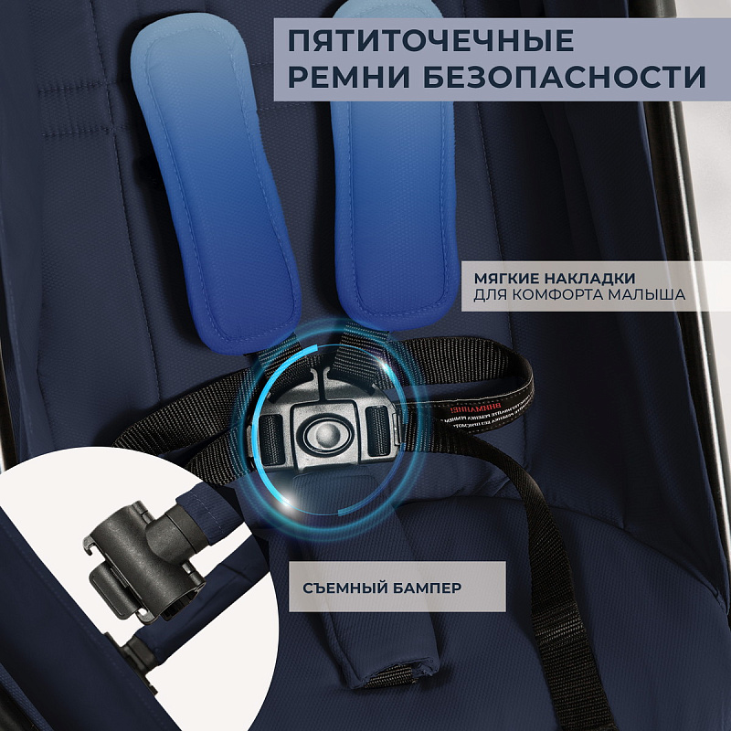 Пятиточечные ремни безопасности с мягкими накладками для надежной защиты во время нахождения пути;
