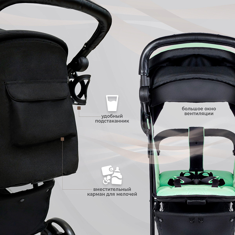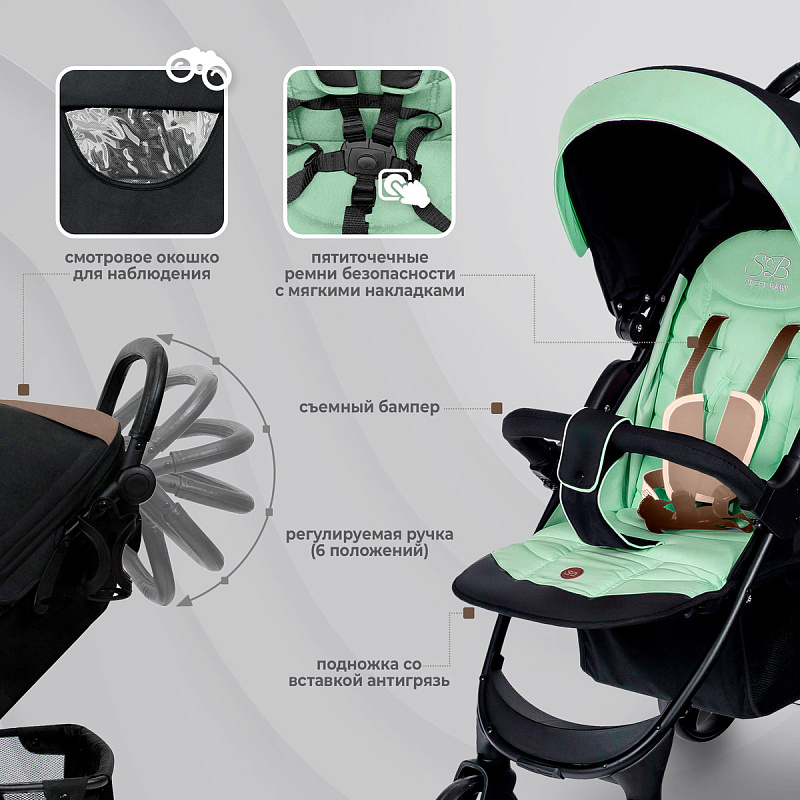 - 4 положения большого капюшона с козырьком закрывают малыша от солнца, ветра и снега
