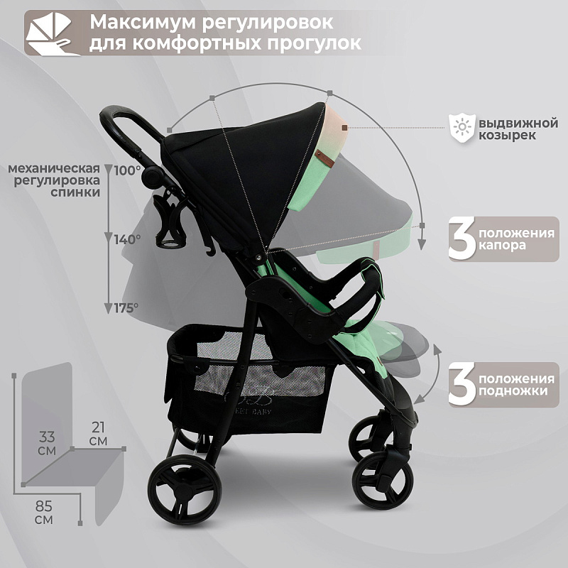 Удобная и функциональная детская прогулочная коляска Sweet baby Rapido предназначена для детей с шести месяцев и до трех лет. Мягкая подвеска на все колеса, позволяет проезжать по любым поверхностям, 3 положения спинки для активных прогулок и спокойного сна регулируются удобным рычагом.