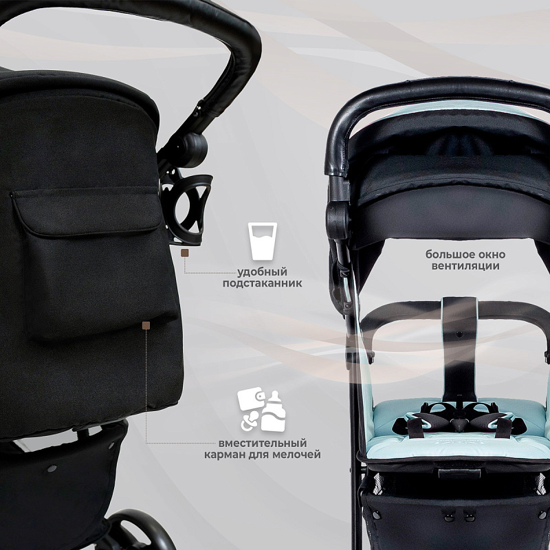 - 4 положения большого капюшона с козырьком закрывают малыша от солнца, ветра и снега