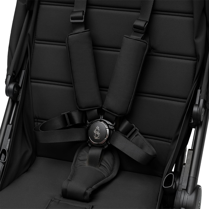- Пятиточечные магнитные ремни с мягкими накладками и съемный поворотный бампер для быстрой и легкой посадки;