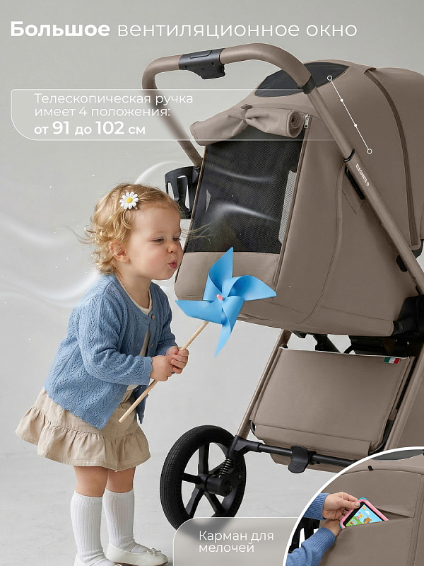 - Смотровое окошко на капоре для наблюдения за ребенком и вентиляционное окошко для обеспечения оптимальной циркуляции воздуха;