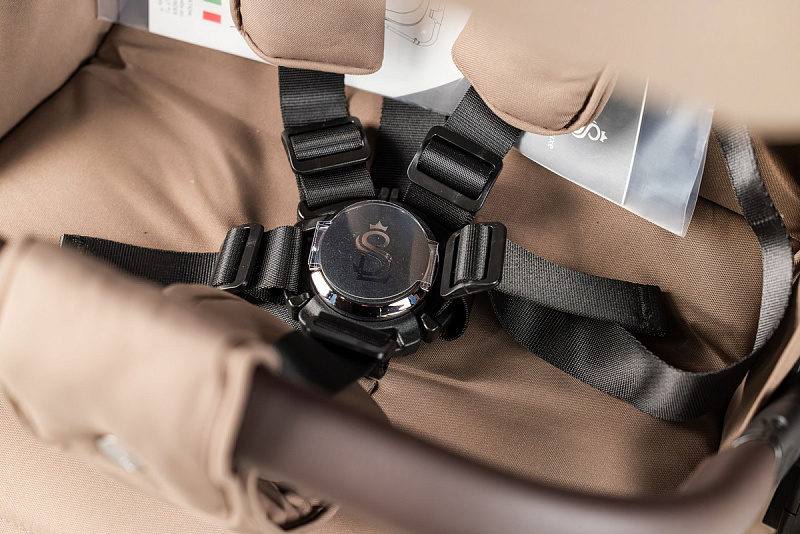 - Пятиточечные магнитные ремни с мягкими накладками и съемный поворотный бампер для быстрой и легкой посадки;