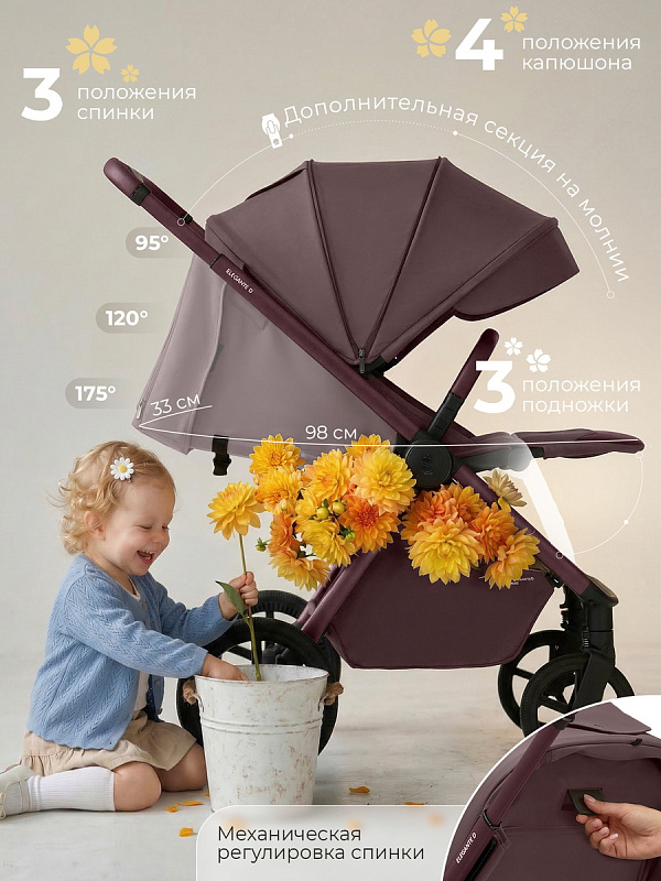 - Механическая регулировка спинки в 3 положениях (сидя, полулёжа, лёжа), большое спальное место (98x33 см) и максимальная нагрузка 22 кг делает SBL Elegante идеальном вариантом для детей до 4 лет.