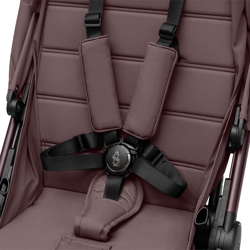 - Пятиточечные магнитные ремни с мягкими накладками и съемный поворотный бампер для быстрой и легкой посадки;