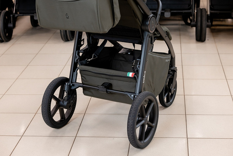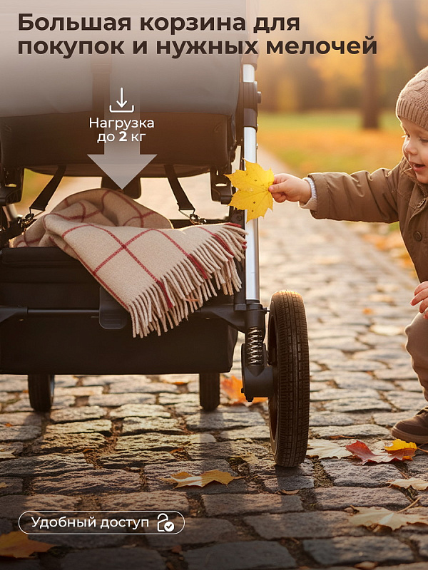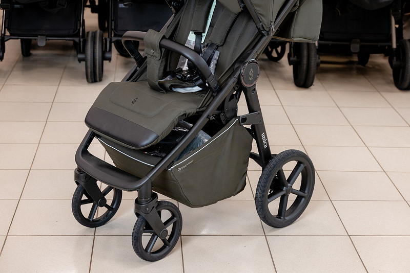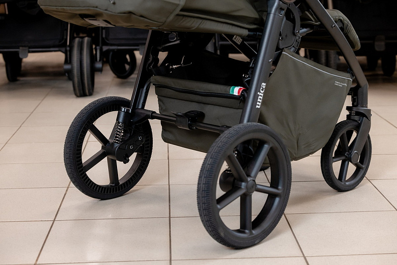 Новые интонационные колеса из высокомолекулярного сшитого полимера с регулируемой подвеской обеспечивают мягкую и комфортную прогулку как в городе, так и на природе. Передние колеса поворотные с функцией фиксации обеспечат отличную маневренность.