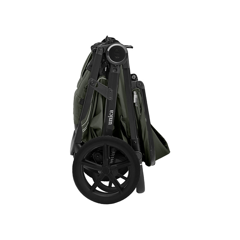 Система складывания одной рукой делает использование коляски еще более удобным. В собранном виде она устойчиво стоит без опоры, не пачкая обивку и ручку.