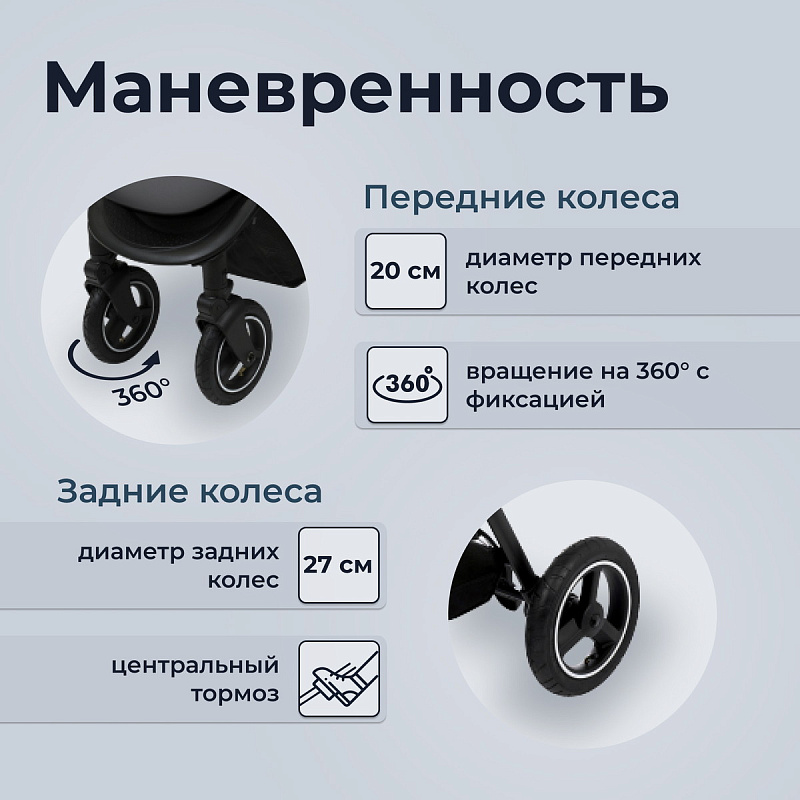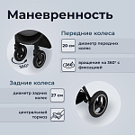 Особое внимание стоит уделить проходимости, маневренности и хорошей амортизации Sweet Baby Suburban Compatto Air обеспеченное большими надувными колесами. Диаметр передних колес 17,5 см, поворотные, фиксируемые, задних – 25,5 см. Sweet Baby Suburban Compatto Air подвластны любые дороги, и название коляски говорит об этом.