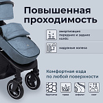 Двойной, увеличенный капор, опускающийся до бампера, закроет малыша от сильного ветра. Бампер съемный с чехлом из экокожи. Окошко для мамы и кармашек для всяких мелочей, утепленный чехол на ножки с большим отворотом, 5-ти точечный ремень безопасности с мягкими накладками, регулируемая ремнем спинка и регулируемая подножка и это тоже достоинства Sweet Baby Suburban Compatto Air.