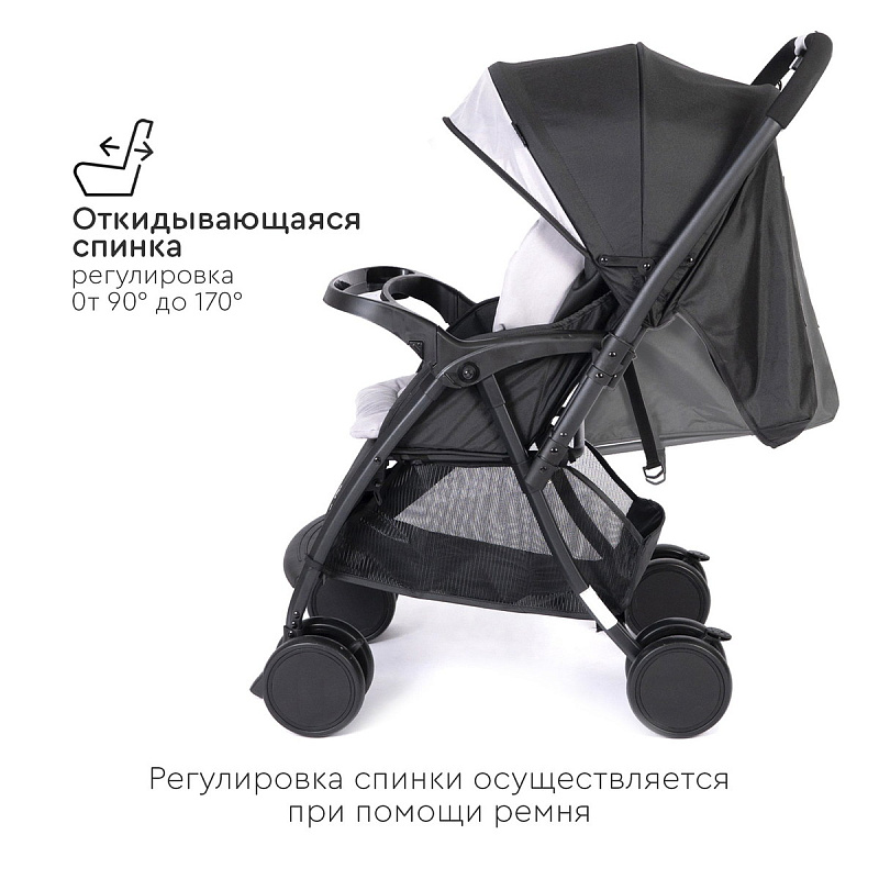 - Регулируемая спинка с помощью ремешка от 90 до 170 градусов