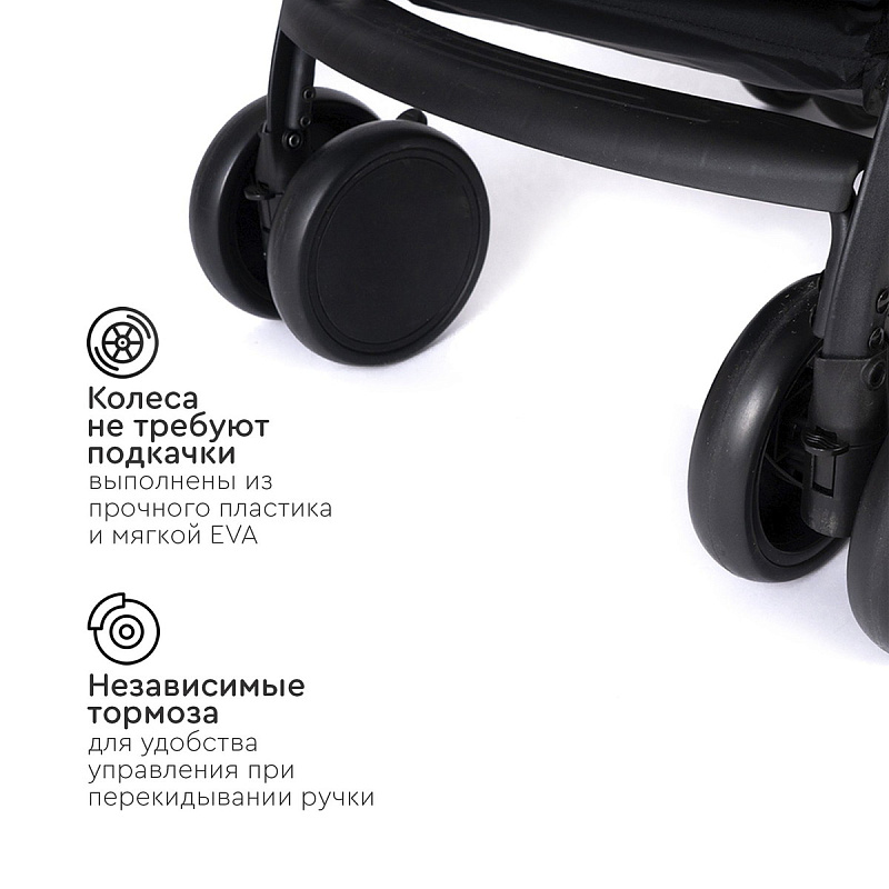 - Независимые тормоза на каждом колесе для удобства управления при перекидывании ручки