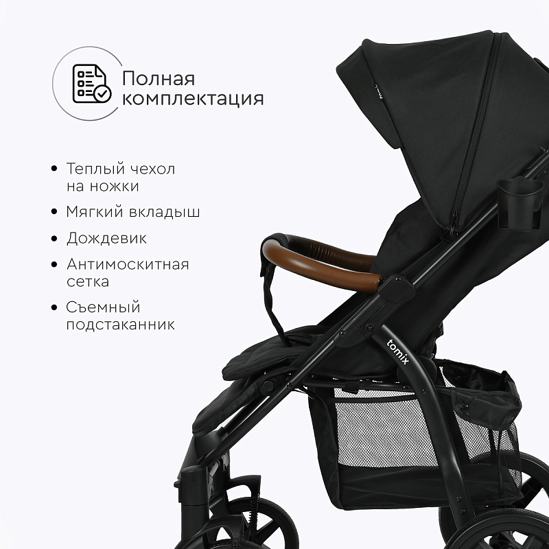 Прогулочная коляска Tomix STELLA 2022 (Томикс Стелла) - всесезонный надежный транспорт для прогулок с ребенком в любое время года. Коляска прекрасно справится с неровностями дороги, снегом, бездорожьем или песком. Колеса увеличенного диаметра и встроенная амортизация подарят вам отличное управление и мягкий ход. Большое спальное место с полностью горизонтальной спинкой позволит ребенку комфортно спать на улице и подойдет даже для ребенка младше 6 месяцев. Глубокий капюшон до бампера и утепленная накидка на ножки надежно защитит ребенка от ветра, снега и осадков. Для удобство мамы предусмотрен удобный кармашек и смотровое окошко.
