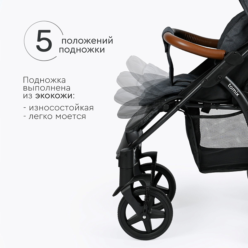 Прогулочная коляска Tomix STELLA 2022 (Томикс Стелла) - всесезонный надежный транспорт для прогулок с ребенком в любое время года. Коляска прекрасно справится с неровностями дороги, снегом, бездорожьем или песком. Колеса увеличенного диаметра и встроенная амортизация подарят вам отличное управление и мягкий ход. Большое спальное место с полностью горизонтальной спинкой позволит ребенку комфортно спать на улице и подойдет даже для ребенка младше 6 месяцев. Глубокий капюшон до бампера и утепленная накидка на ножки надежно защитит ребенка от ветра, снега и осадков. Для удобство мамы предусмотрен удобный кармашек и смотровое окошко.