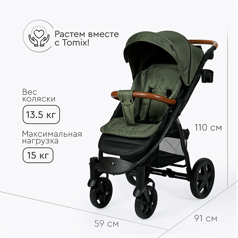 Прогулочная коляска Tomix STELLA 2022 (Томикс Стелла) - всесезонный надежный транспорт для прогулок с ребенком в любое время года. Коляска прекрасно справится с неровностями дороги, снегом, бездорожьем или песком. Колеса увеличенного диаметра и встроенная амортизация подарят вам отличное управление и мягкий ход. Большое спальное место с полностью горизонтальной спинкой позволит ребенку комфортно спать на улице и подойдет даже для ребенка младше 6 месяцев. Глубокий капюшон до бампера и утепленная накидка на ножки надежно защитит ребенка от ветра, снега и осадков. Для удобство мамы предусмотрен удобный кармашек и смотровое окошко.