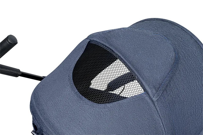 • Глубокий капюшон фиксируется в открытом виде, защищая малыша от солнца и ветра. На капюшоне предусмотрено смотровое окошко с сеточкой, в закрытом положении оно фиксируется на магнит.