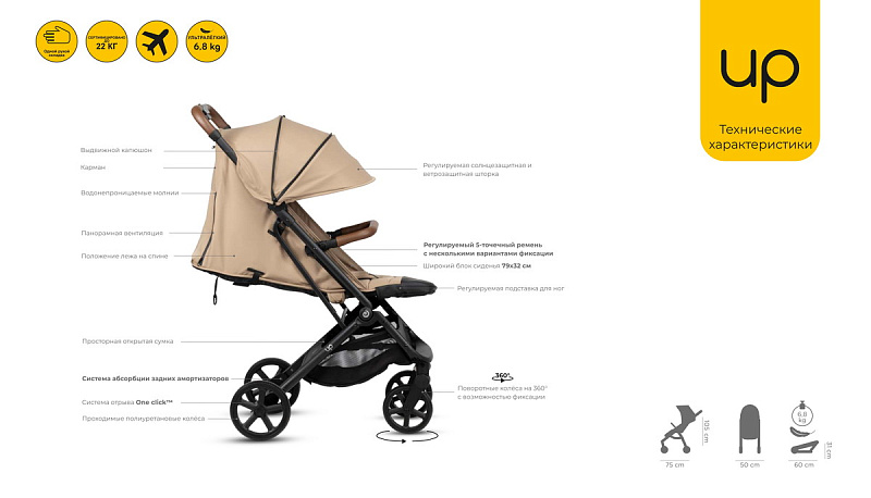 Знакомьтесь, UP - ультралёгкая коляска для ежедневного использования и путешествий. Вес всего 6,8 кг делает её удобной для переноски, управления и подъёма даже одной рукой.