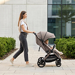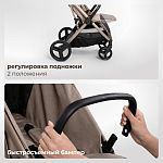 Каркас детской коляски выполнен из анодированного алюминия — легкого, но чрезвычайно прочного материала. Анодированное покрытие не отслаивается, устойчиво к царапинам, атмосферным воздействиям и коррозии. Поверхность рамы гигиенична, не выделяет вредных веществ и сохраняет эстетичный вид даже при активной эксплуатации. Рама окрашена в цвет ткани с эффектом металлик, что придаёт современный и стильный внешний вид. Это рама, которая переживёт все детские зимы и летние авантюры, сохранит вид и не покроется ржавчиной после первого дождя. Роскошная ручка из натуральной премиальной кожи с гравировкой логотипа — это показатель высокого качества и стиля в каждой детали. Ручка регулируется по высоте в 3-х положениях, что позволяет настроить её под рост любого родителя.