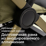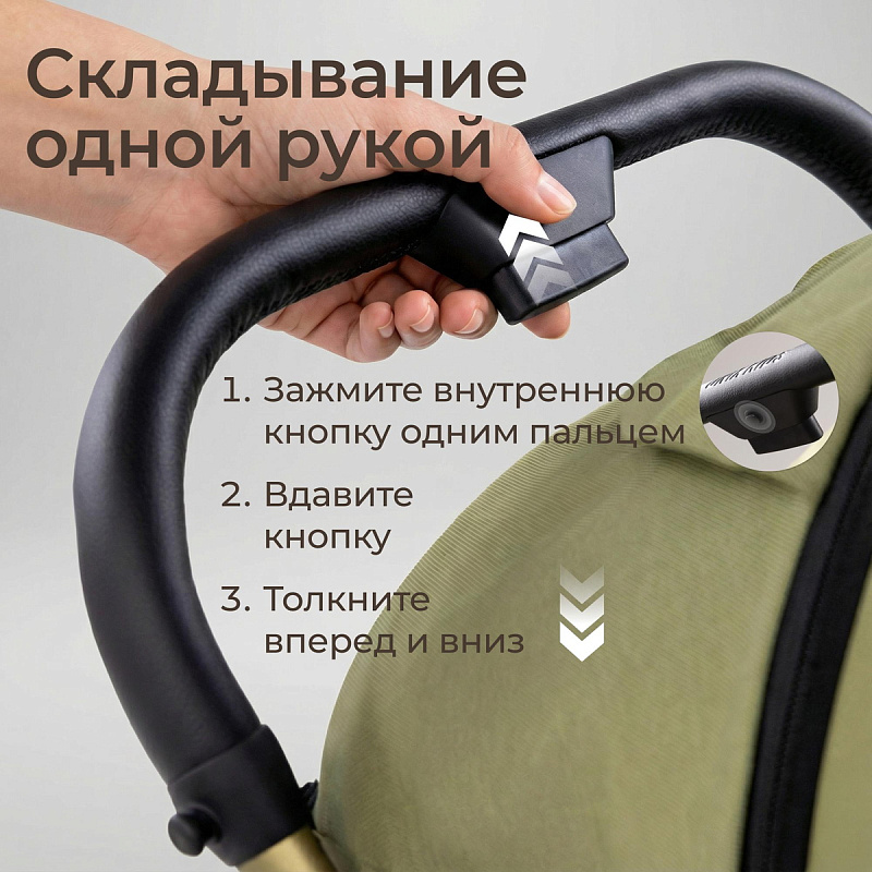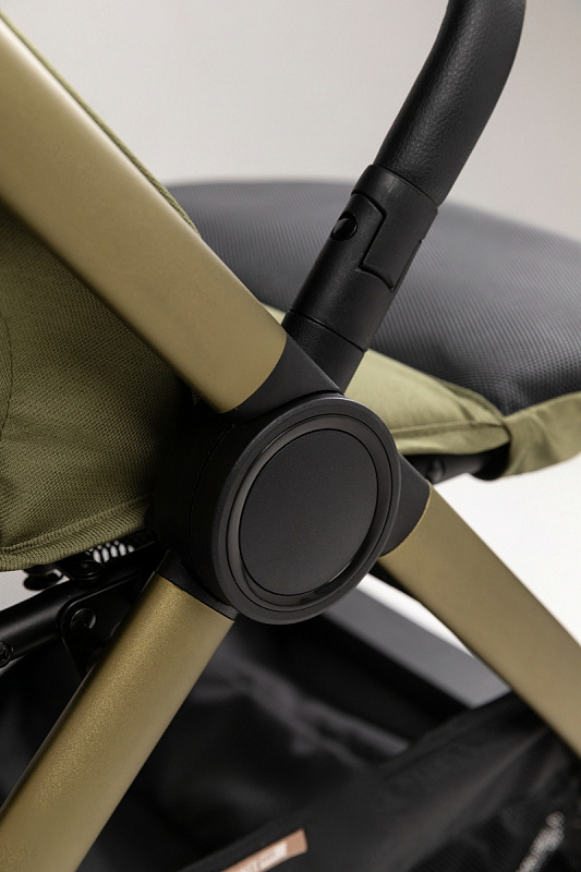 Каркас детской коляски выполнен из анодированного алюминия — легкого, но чрезвычайно прочного материала. Анодированное покрытие не отслаивается, устойчиво к царапинам, атмосферным воздействиям и коррозии. Поверхность рамы гигиенична, не выделяет вредных веществ и сохраняет эстетичный вид даже при активной эксплуатации. Рама окрашена в цвет ткани с эффектом металлик, что придаёт современный и стильный внешний вид. Это рама, которая переживёт все детские зимы и летние авантюры, сохранит вид и не покроется ржавчиной после первого дождя. Роскошная ручка из натуральной премиальной кожи с гравировкой логотипа — это показатель высокого качества и стиля в каждой детали. Ручка регулируется по высоте в 3-х положениях, что позволяет настроить её под рост любого родителя.