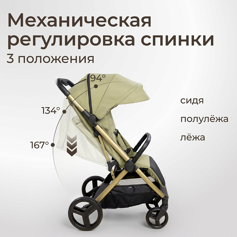 Спинка и положения: прогулочный блок имеет три комфортных положения: сидя (94°), полулёжа (134°) и лёжа (167°). Регулировка осуществляется простым рычагом, что позволяет быстро адаптировать спинку под нужды ребёнка. Капюшон из ткани с защитой от ультрафиолета SPF50+ раскрывается широко и надежно защищает от солнца, ветра и дождя. Смотровое вентиляционное окно на магнитной застёжке позволяет всегда держать малыша в поле зрения и обеспечивать постоянный приток свежего воздуха, создавая комфортный микроклимат внутри коляски.