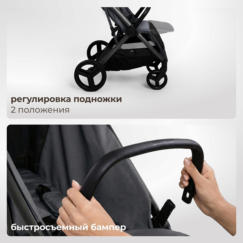 Для вентиляции предусмотрено большое окно на молнии и смотровое окошко на магнитах, позволяющее наблюдать за малышом, не нарушая его покой. Москитная сетка вшита в капюшон. Пятиточечный ремень безопасности с мягкими плечевыми накладками надежно фиксирует ребёнка. Быстросъемный бампер обеспечивает дополнительную защиту и удобство посадки — ребёнок чувствует себя в безопасности и комфорте. Подножка: регулируется в двух положениях для поддержки ножек малыша. Вместительная корзина из прочной ткани с вентилируемыми вставками из сетки рассчитана на нагрузку до 5 кг. Коляска для путешествий, прогулок, самолета оснащена интуитивно понятной системой управления с одной кнопки, что делает её использование максимально простым.