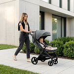 Спинка и положения: прогулочный блок имеет три комфортных положения: сидя (94°), полулёжа (134°) и лёжа (167°). Регулировка осуществляется простым рычагом, что позволяет быстро адаптировать спинку под нужды ребёнка. Капюшон из ткани с защитой от ультрафиолета SPF50+ раскрывается широко и надежно защищает от солнца, ветра и дождя. Смотровое вентиляционное окно на магнитной застёжке позволяет всегда держать малыша в поле зрения и обеспечивать постоянный приток свежего воздуха, создавая комфортный микроклимат внутри коляски.