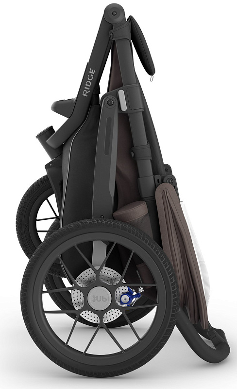 Трехколесная UPPAbaby RIDGE имеет поворотное переднее колесо и два задних колеса большего диаметра. Такая конструкция обеспечивает максимальную устойчивость даже при высокой скорости движения.