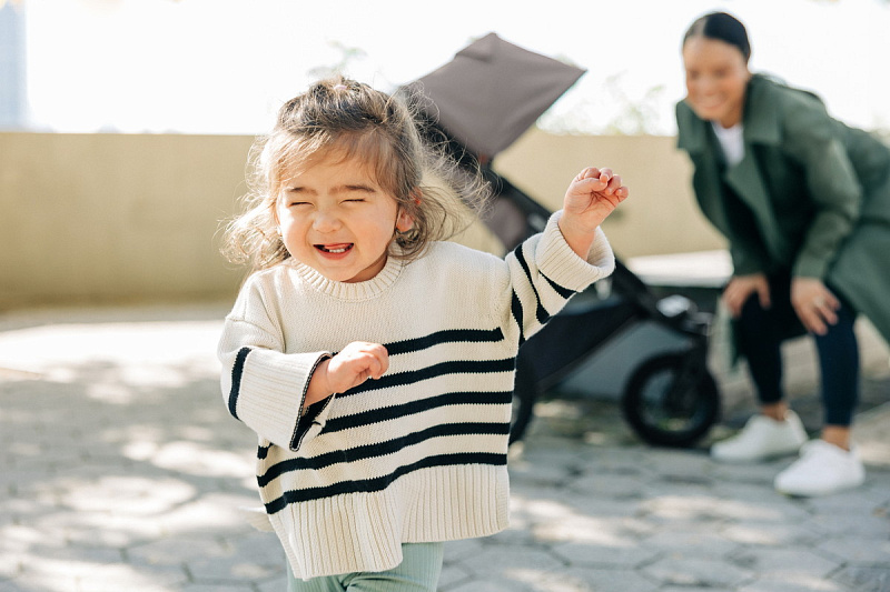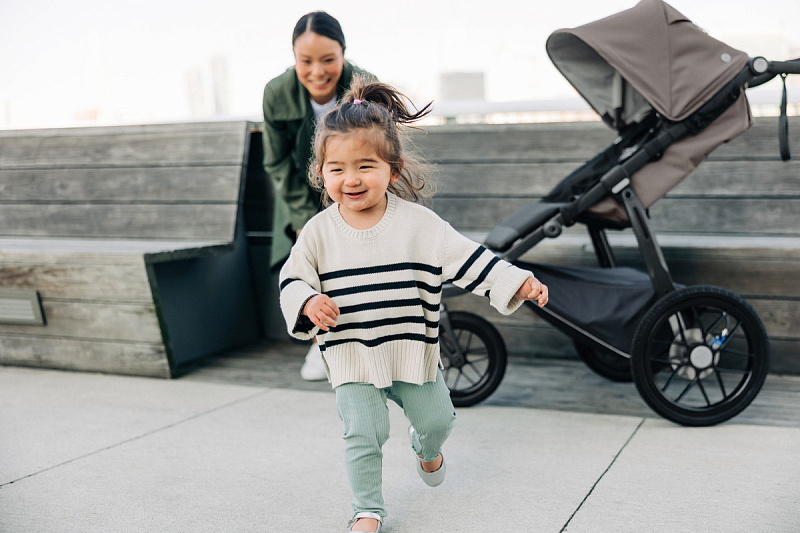 - ремешок на запястье не позволит коляске случайно укатиться даже во время бега