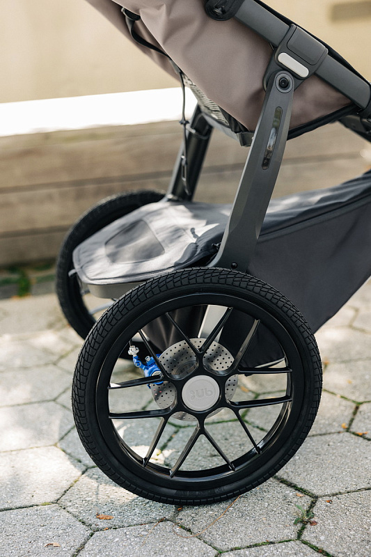 Такие колеса смягчают толчки и удары при движении по неровной поверхности, поэтому можно не ограничивать прогулки только асфальтированными дорожками.