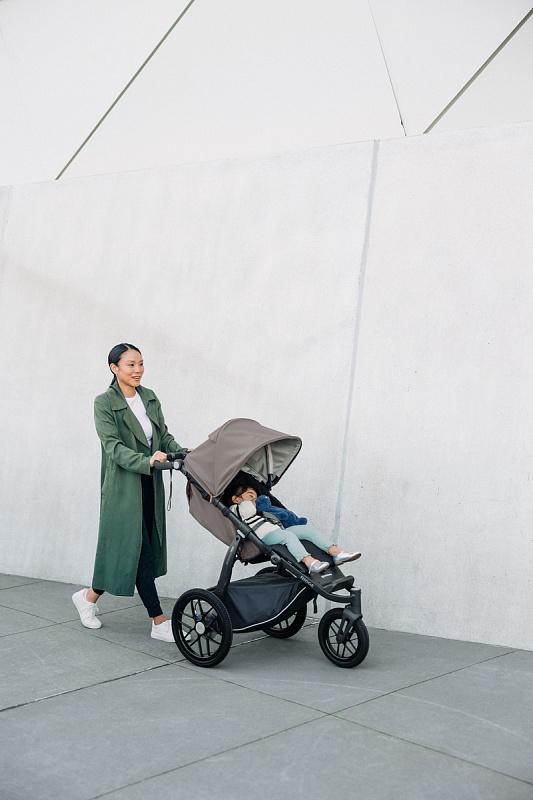 - совместима с подножкой-скейтом для старшего ребенка UPPAbaby RIDGE Piggyback Ride-Along для малышей весом до 25 кг (только для прогулок, не для бега)
