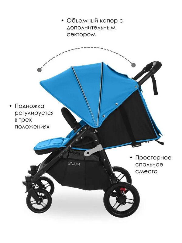 - Valco baby Snap 4 коляска имеет просторное сидение прогулочного блока с регулируемой спинкой, которая раскрывается до горизонтального положения.