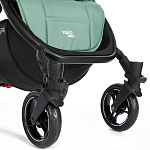 Модель Snap 4 Flatt Matt имеет четыре полиуретановых колеса, которые не боятся проколов. Два передних колеса могут вращаться на 360°, это увеличивает манёвренность коляски при движении по ровной дороге. Если же на пути часто возникают препятствия, колёса лучше зафиксировать. Для этого над каждым из них имеется специальный рычажок. Задние колёса оснащены стояночным тормозом, педаль которого расположена по центру задней оси. На педали хорошо видна маркировка в виде закрытого и открытого замка. Устройство педали хорошо продумано и позволяет снимать коляску с тормоза, не испортив обувь.
