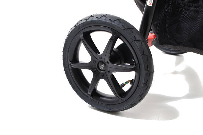 Количество колёс, размеры колес3шт. надувные легкосъёмные колеса; переднее колесо поворотное с блокировкой; задние колёса с амортизацией поглощающей неровности;