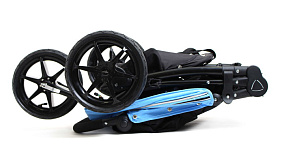 - Система амортизации реализована на задних колесах, переднее же за счет самоцентрирующегося механизма делает коляску чрезвычайно маневренной и мобильной.